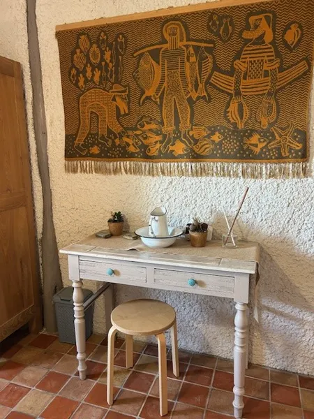 Le calme et la sérénité vous séduiront. Un gîte où il fait bon vivre. Gîte atypique, déco soignée et matériaux naturels (chaux, pierre, bois, terre cuite).