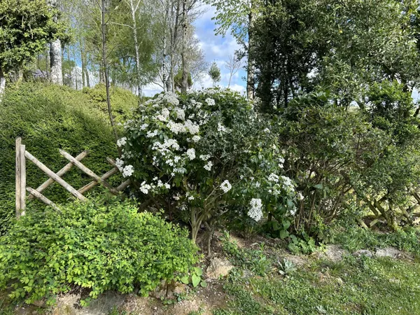 Entrée indépendante, terrain ombragé privatif et aménagé : barbecue, portique, salon de jardin.